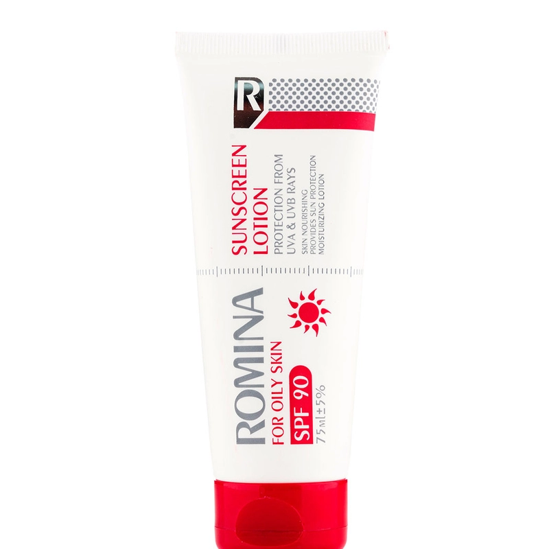 لوسیون ضد آفتاب بی رنگ رومینا SPF90 پوست چرب